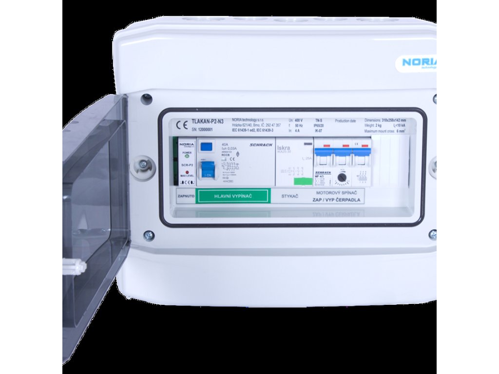 Vysoko výkonný čerpací systém NORIA TLAKAN P4 obsahuje robustné celonerezové kalové čerpadlo LUCA - 100 400 V s integrovaným rezacím zariadením s výbornou odolnosťou proti upchávaniu, farebný ovládací dotykový displej, riadiacu jednotku s prúdovým chráničom, zvukovou a svetelnou signalizáciou poruchy, nerezovou PE spojmi a potrubím.