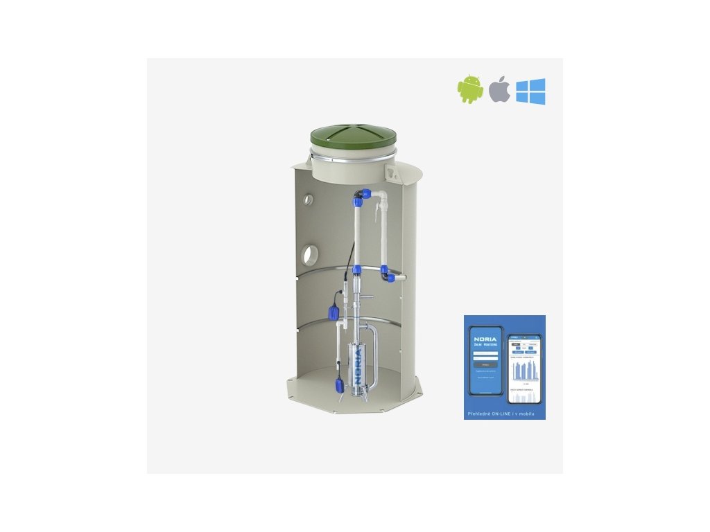 Aplikácia NORIA ONLINE MONITORING umožňuje veľmi jednoduché a prehľadné ovládanie. Čerpacia stanica je pripojená do mobilnej siete bez použitia SIM karty. Stanica sleduje, hlási a ukladá prevádzkové stavy aj kompletnú históriu v reálnom čase (napr. prevádzkové hodiny, počet zopnutí, výpadok prúdu, identifikácia a hlásenie porúch, servisný interval alebo znečistenie).