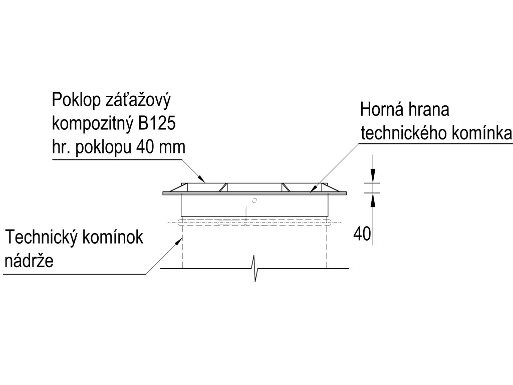 Záťažový kompozitný poklop s únosnosťou do 12,5 t je vybavený konštrukčnými úpravami pre jednoduchú inštaláciu. Tento záťažový poklop Vám spolu s obetónovaním nádrže umožní umiestniť nádrž pod parkovaciu alebo odstavnú plochu pre osobné vozidlá alebo pod plochu s pohybom chodcov a cyklistov. Poklop je uzamykateľný imbusovou skrutkou, vonkajší priemer 77 cm. Poklop zodpovedá požiadavkám normy EN 124.