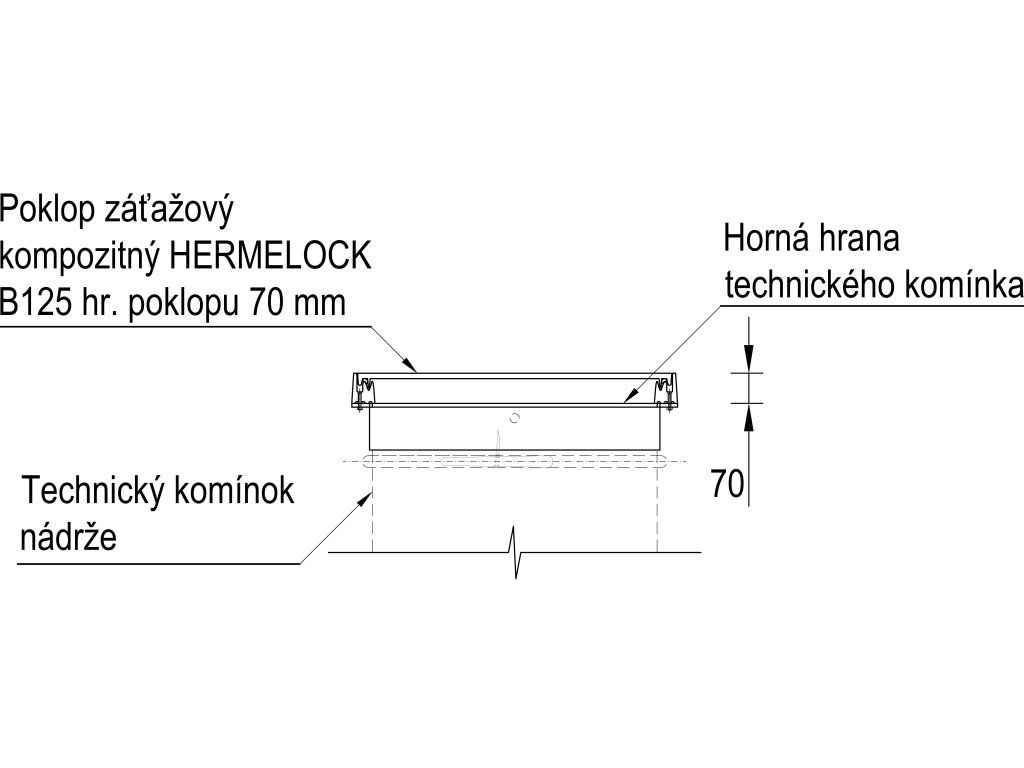 Vodotesný a pachotesný záťažový kompozitný poklop s únosnosťou do 12,5 t vrátane konštrukčných úprav na inštaláciu. Tento záťažový poklop Vám spolu s obetónovaním nádrže umožní umiestniť nádrž pod parkovaciu alebo odstavnú plochu pre osobné vozidlá alebo pod plochu s pohybom chodcov a cyklistov. Poklop je uzamykateľný imbusovými skrutkami, vonkajší rozmer 70 x 70 cm. Poklop zodpovedá požiadavkám normy EN 124.