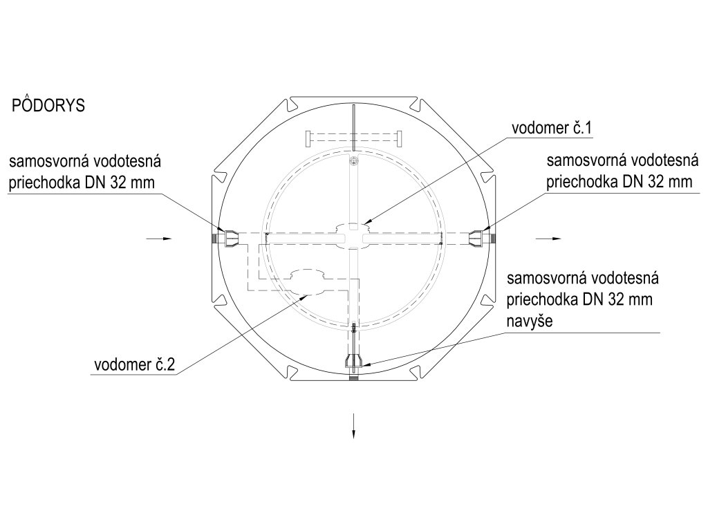Skrutkovacia AZ spojka pre vonkajší priemer potrubia DN32 (v 90st. medzi stálymi prechodkami) - konštrukčná úprava (týka sa vodomernej šachty MERX1, MERX2).