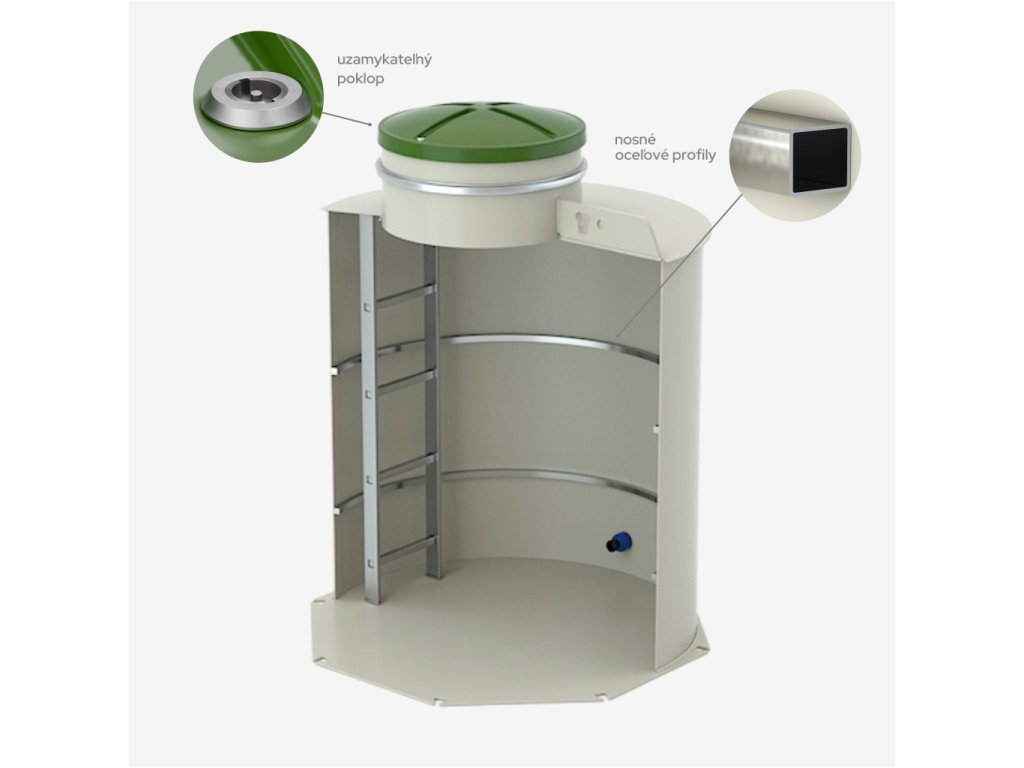 Konštrukcia vodomernej šachty je valcového tvaru. V kombinácii s použitým materiálom (valcovaným polypropylénom najvyššej kvality) a precíznou slovenskou výrobou zaručuje pre vodomernú šachtu vynikajúce úžitkové vlastnosti a dlhú životnosť.